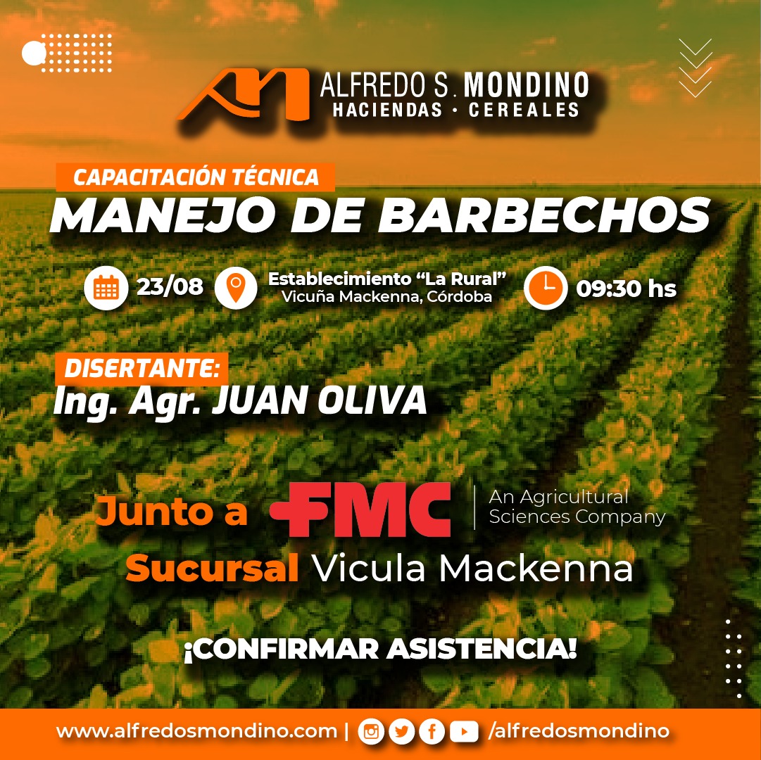 En colaboraci贸n con la sucursal de Vicu帽a Mackenna de Alfredo S. Mondino y la empresa FMC, esta charla te brindar谩 herramientas esenciales para optimizar el manejo de barbechos en tus cultivos.