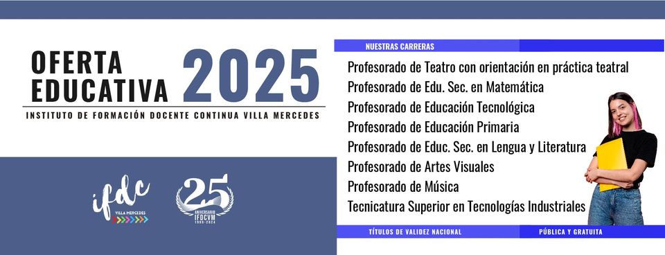 El Instituto de Formación Docente Continua de Villa Mercedes emitio un comunicado anunciando que las preinscripciones para el ciclo lectivo 2025 ya están abiertas. Incluyendo, la oferta educativa disponible para el próximo año.