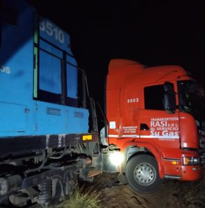 Un accidente se registró este martes alrededor de las 21 horas en el paso a nivel de Cramer, a la altura de Villa Reynolds, en inmediaciones de la V Brigada Aérea, cuando un tren carguero colisionó con un camión. A pesar del impacto, no se reportaron personas lesionadas.