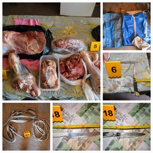 En el primer allanamiento, los efectivos secuestraron carne vacuna en partes, una sierra carnicera manual, dos cuchillos, una soga, dos lingas, tres bolsas de carpa con diseño de mochila y osamentas de extremidades de animal vacuno. En el segundo domicilio, incautaron cuatro cuchillos.