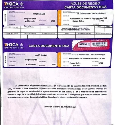 En el documento, la comisión directiva de AMET solicita al gobernador que, “en la medida de las posibilidades ciertas”, haga efectiva la totalidad de los haberes del mes en curso. Argumentan que los afiliados tienen compromisos de pago asumidos que son ineludibles.