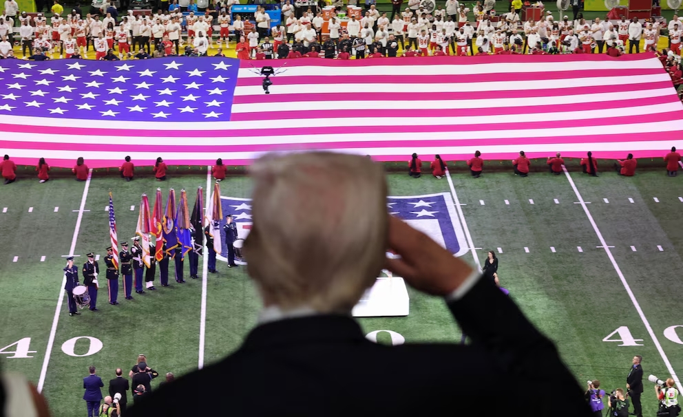 Trump, anoche, en New Orleans, donde se jugó el Super Bowl. Camino del evento, anticipó aranceles del 25% al aluminio y el acero REUTERS/Kevin Lamarque