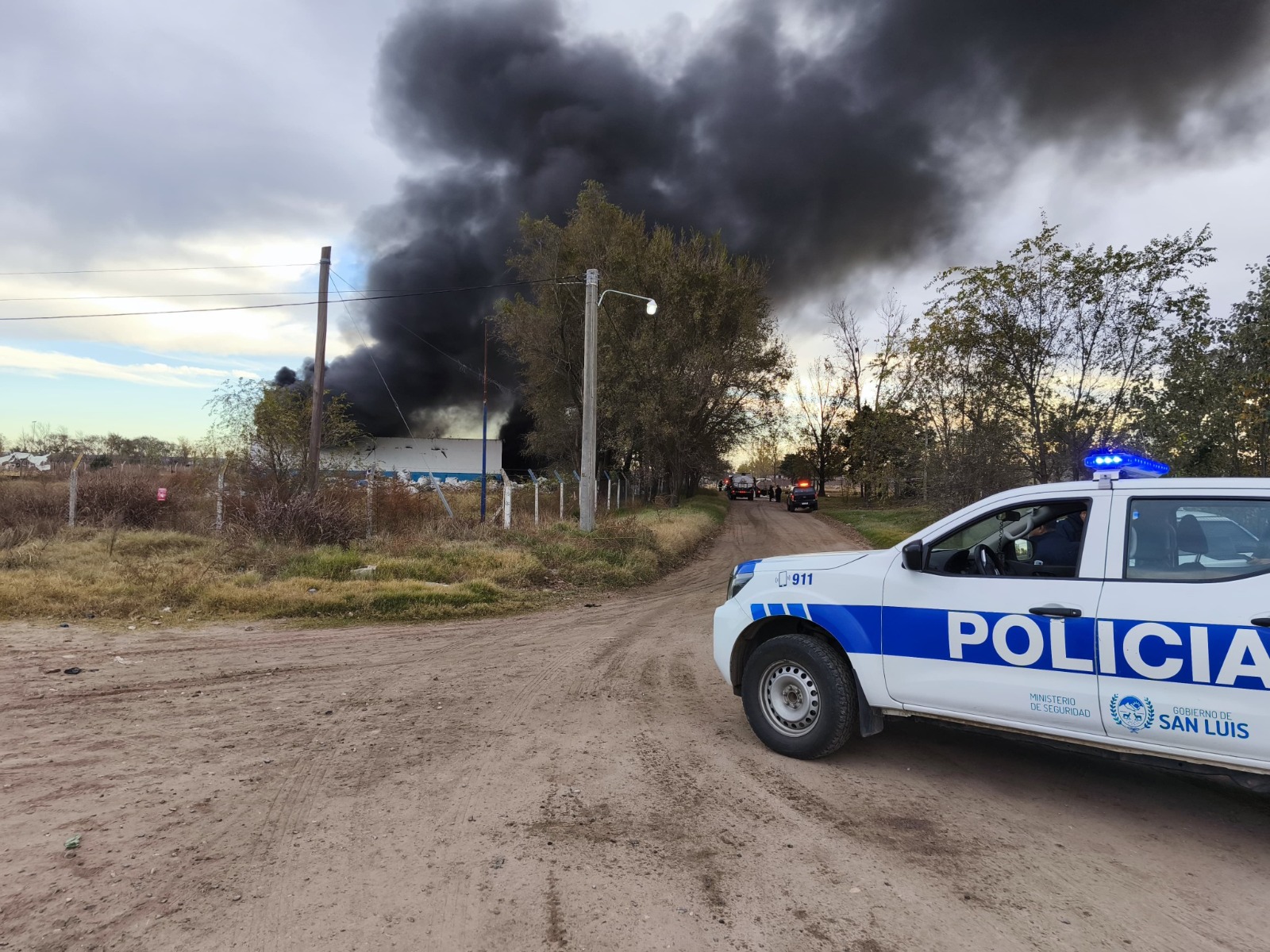 Un incendio de gran intensidad se desató esta mañana en una recicladora ubicada junto a la autopista Serranías Puntanas, sobre Ruta 7, a la altura de la estación de servicio Axion, en Villa Mercedes. Las llamas se propagaron con rapidez, generando una densa columna de humo visible desde distintos sectores de la ciudad.