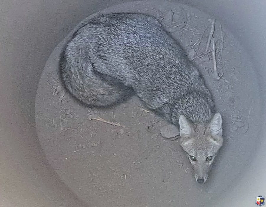 Bomberos de la Policía rescataron a un zorro que había caído a un pozo