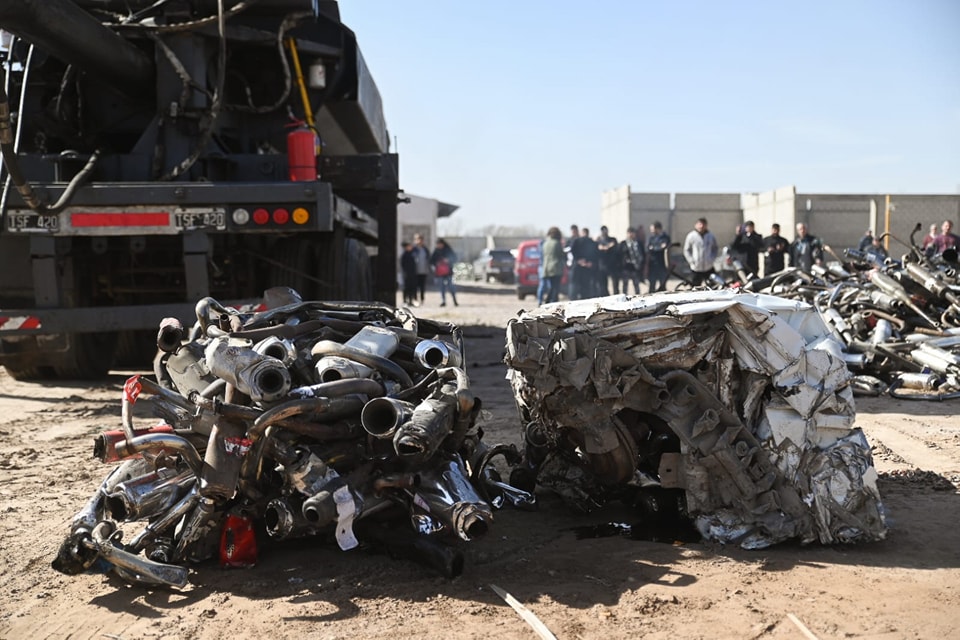 La operación de compactación tuvo lugar en las instalaciones de la empresa Deca SRL, la cual se encargó de trabajar en el procesamiento de este material para su posterior reciclaje. Cada uno de estos caños de escape fue recuperado de vehículos que solían ser utilizados para generar disturbios y problemas en las calles de la ciudad.
