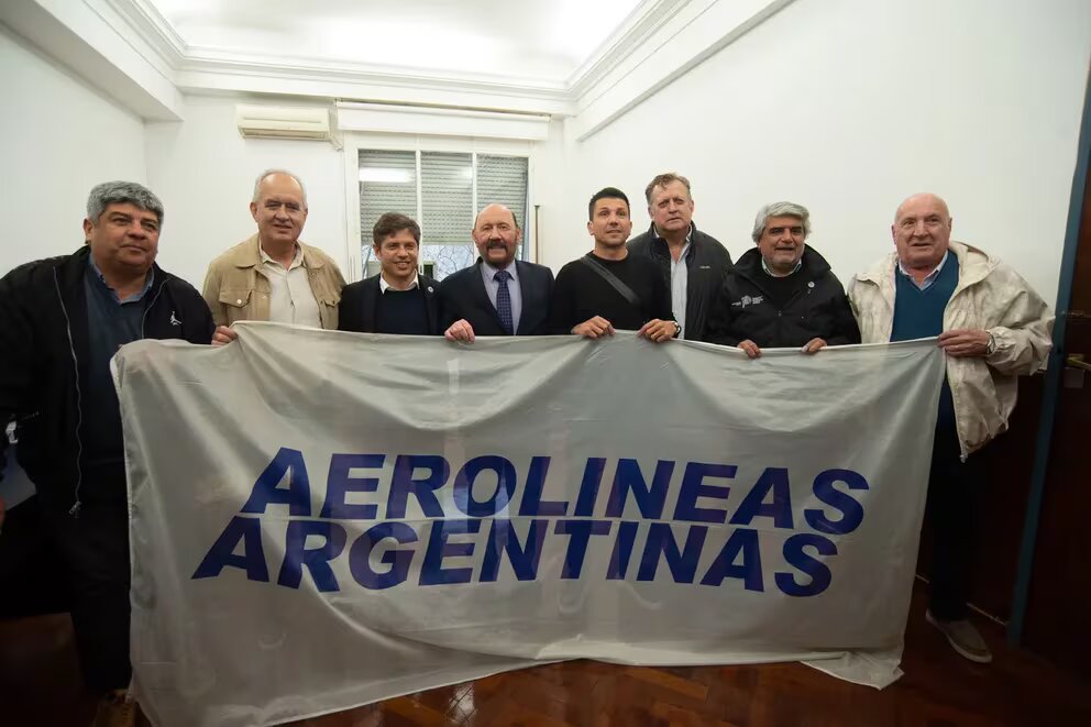 El encuentro, que se realizó en la sede cegetista de Azopardo 802, fue pactado para analizar la situación política y socioeconómica del país, pero se aprovechó la presencia de los sindicalistas aeronáuticos para expresarles el apoyo de la CGT y de los gobernadores en el duro conflicto que atraviesan. Al final, una foto conjunta graficó el respaldo a los gremios aeronáuticos: los cotitulares de la CGT Héctor Daer y Pablo Moyano posaron con Biró, Brey, Fernández, Kicillof, Insfrán y el ministro de Trabajo bonaerense, Walter Correa, levantando la bandera de Aerolíneas Argentinas.