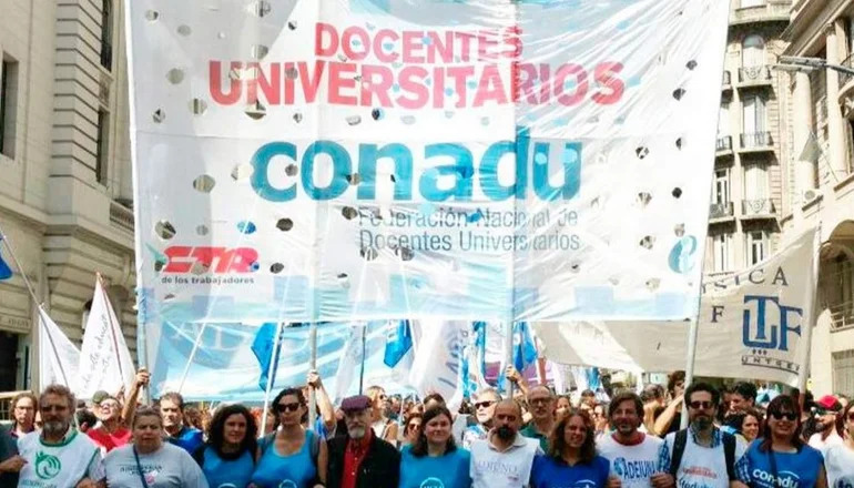 “Convocamos a trabajadoras y trabajadores de las Universidades Nacionales a través de las propuestas que realicen las diferentes asociaciones de base, a sumarse a las jornadas de protesta”, señalaron en el comunicado al que adhirieron la Federación Nacional de Docentes Universitarios (Conadu); Federación Nacional de Docentes, Investigadores y Creadores Universitarios (Conadu Histórica), la Federación de Docentes de las Universidades (Fedun), Confederación de Trabajadores de la Educación (Ctera), Asociación Gremial de Docentes de la UTN (Fagdut), Federación Argentina del Trabajador de Universidades Nacionales (Fatun) y la Unión de Docentes Argentinos (UDA).