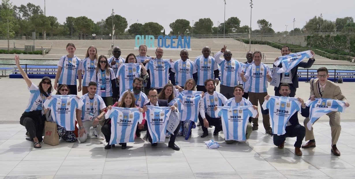 El influencer Nico Marín también celebraba, con su sonrisa inmensa: “Lo vamos a lograr”, decía y repartía camisetas argentinas con la leyenda 30×30 a los asistentes. Hasta John Kerry recibió una y posó para la fotos apoyando la causa argentina. La filántropa Dona Bertarelli, navegante de todos los mares y fundadora de Blue Mission, celebro vía X la noticia: “Excelentes noticias llegan desde el Congreso argentino”, tuiteó. También se entusiasmó Sylvia Earle, una leyenda del conservacionismo global, la gran madre de la protección de los mares: “Ahora hay información. Para los argentinos es el momento de actuar. Es ahora”, expresó en diálogo con Clarín.