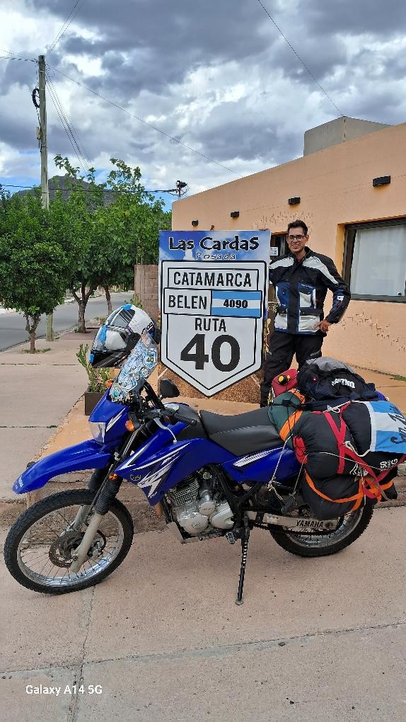 Mariano Leal (@porelmundoen2ruedas) es de San Luis Capital, tiene 30 años y trabaja como metalúrgico. Su historia sobre dos ruedas comenzó en la infancia, cuando escuchaba las anécdotas de su padre, quien recorrió la Patagonia en moto en los años 80. Esos relatos encendieron una pasión que con el tiempo se volvió un estilo de vida. “La moto es una forma de conectar con la libertad, con la ruta y conmigo mismo”, afirmó en diálogo con La Pedrera Noticias.