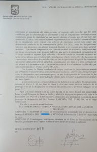 2. En segundo lugar en relación a la acusación de haber sido sumariado en la UNSL, debo destacar que la misma no prosperó y quede sobreseído, en consecuencia, puedo desempeñar un cargo público, y en aras de desmentir esta afirmación acompaño la correspondiente resolución.