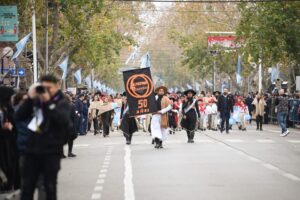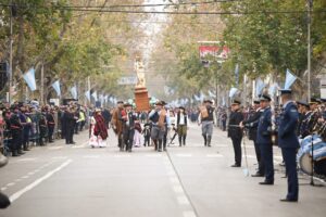 El intendente Maxi Frontera y el Gobernador Alberto Rodríguez Saá encabezaron el desfile del 9 de julio en la avenida Mitre.