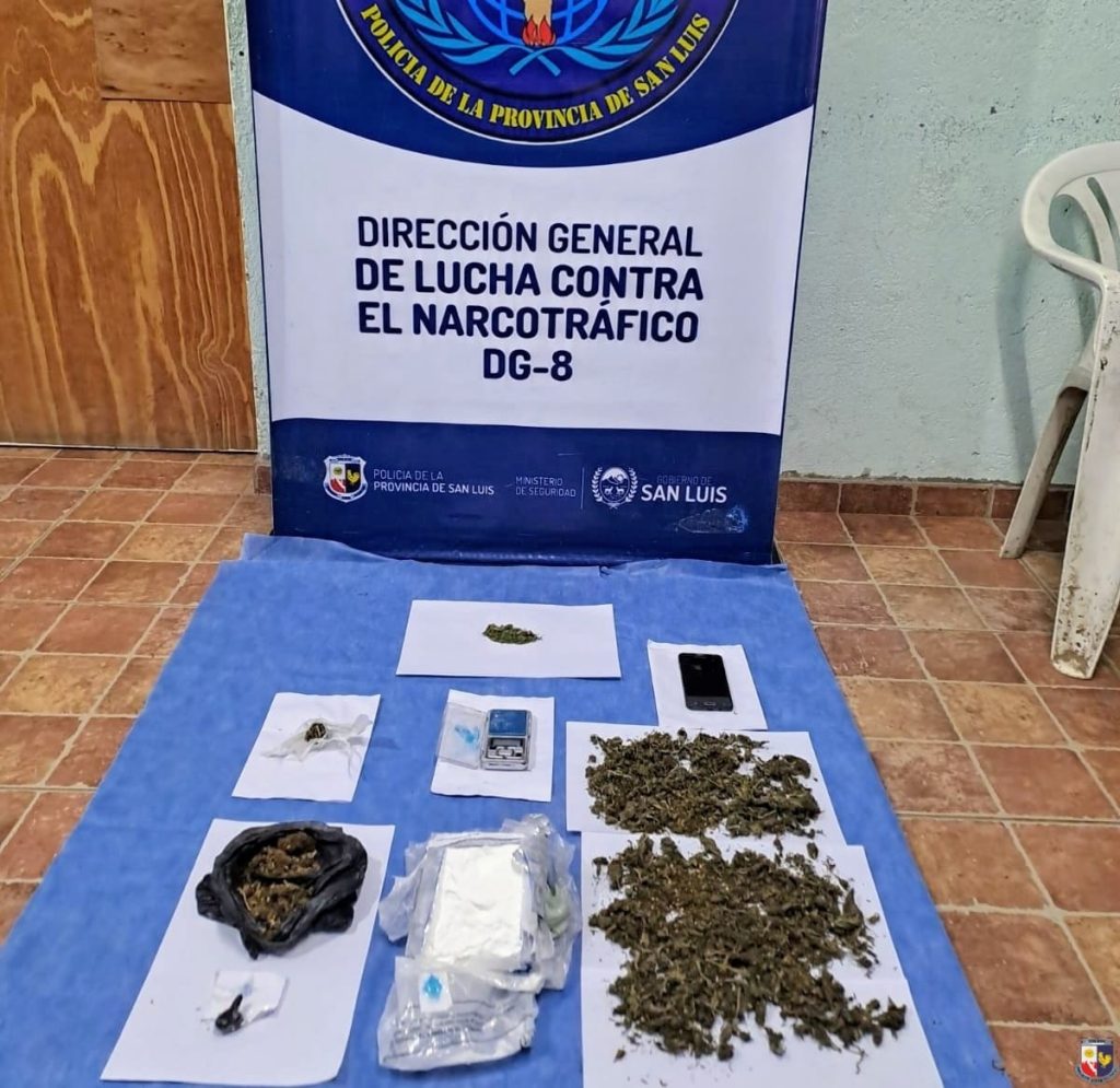 Este miércoles, la Policía de San Luis incautó cocaína y marihuana por un valor estimado de casi 15 millones de pesos en Villa Mercedes, durante un operativo realizado en el barrio San José. La intervención estuvo encabezada por efectivos de la Dirección General de Lucha Contra el Narcotráfico, en el marco de una investigación por robo.
