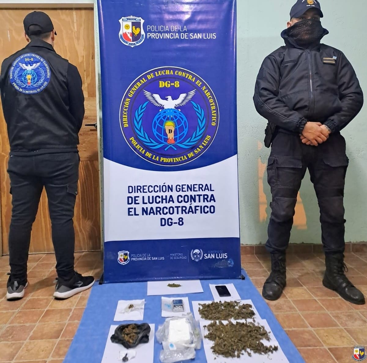 Este miércoles, la Policía de San Luis incautó cocaína y marihuana por un valor estimado de casi 15 millones de pesos en Villa Mercedes, durante un operativo realizado en el barrio San José. La intervención estuvo encabezada por efectivos de la Dirección General de Lucha Contra el Narcotráfico, en el marco de una investigación por robo.