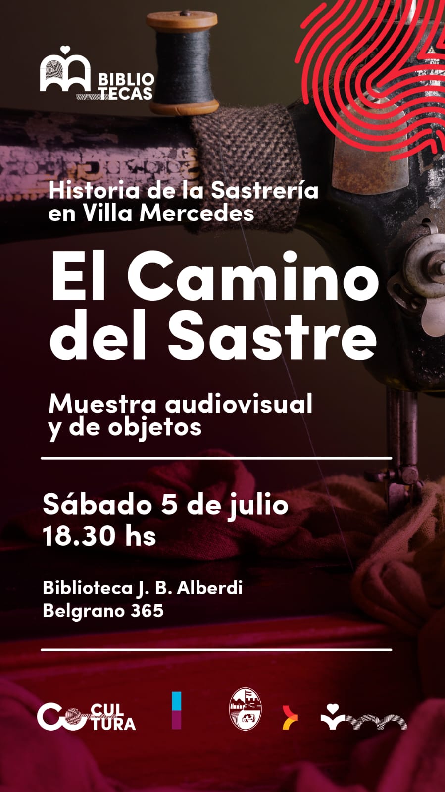Este sábado 5 de julio te esperamos a las 18:30hs en la Biblioteca Alberdi (Belgrano 365) para compartir la muestra audiovisual y de objetos “El Camino del Sastre”.