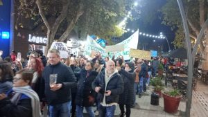 Por segunda semana consecutiva los docentes autoconvocados, médicos, enfermeros, radiólogos, nutricionistas, agentes sanitarios y administrativos nucleados en la carrera sanitaria, empleados públicos autoconvocados, dirigentes de ATE, se reunieron con el frio muy abrigados, y con antorchas para hacer llegar su reclamo al gobierno provincial, también acompañados con cacerolas y bombos, marcharon por el microcentro.