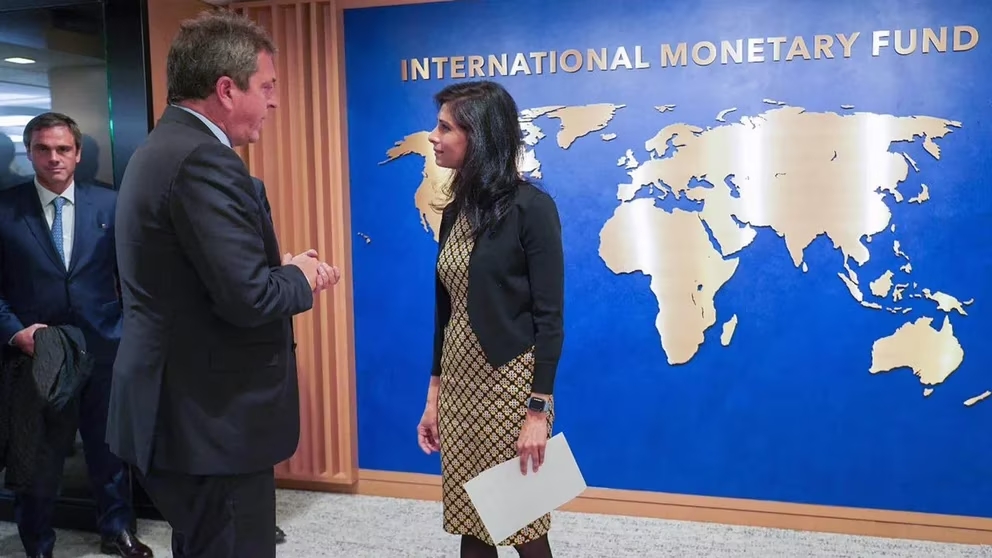 El ministro de Economía, Sergio Massa, y la número dos del FMI, Gita Gopinath