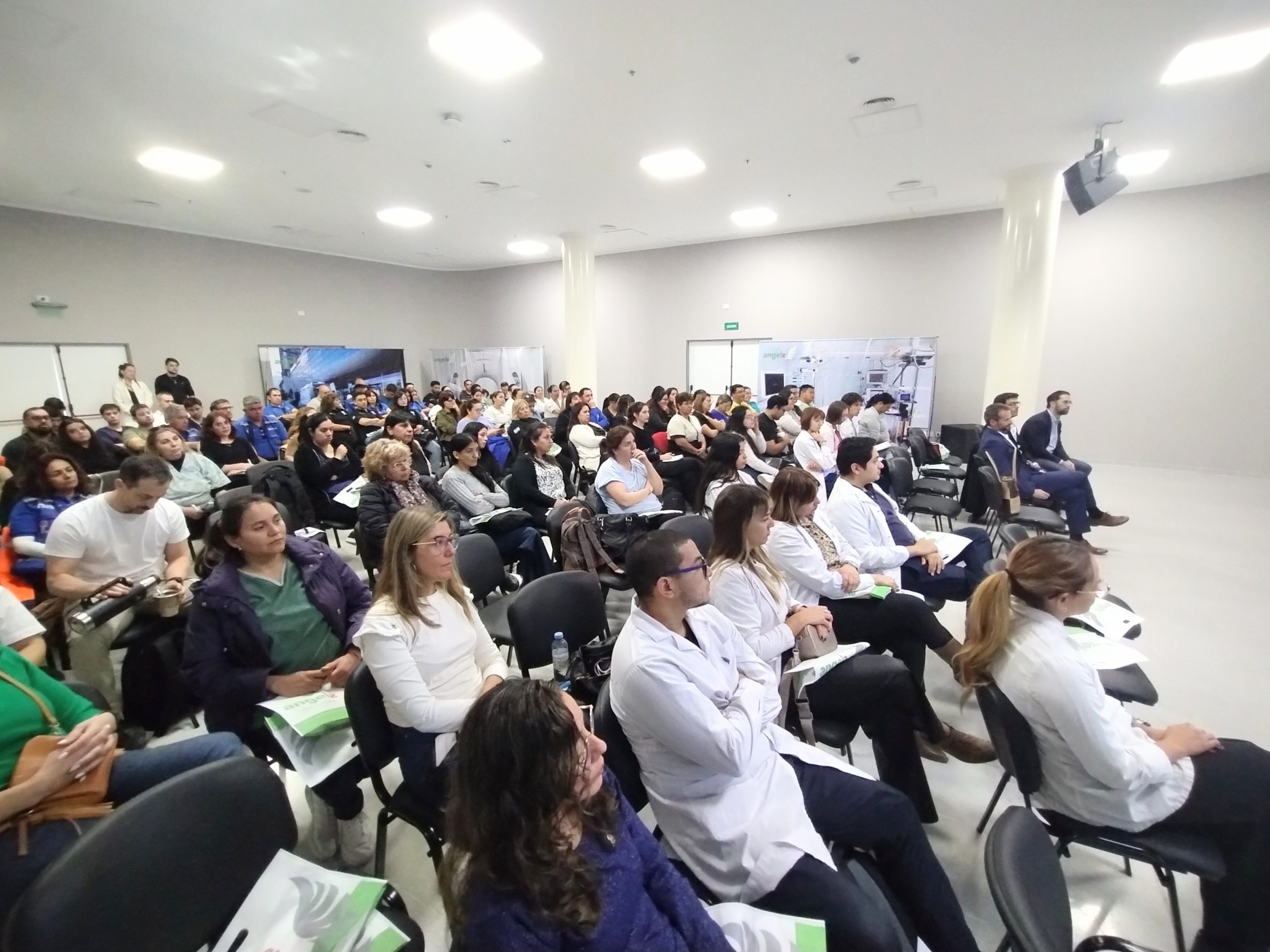 La actividad se desarrolló en el auditorio del hospital bajo la modalidad presencial, congregando a médicos, estudiantes del ciclo clínico (4to, 5to y 6to año de medicina), estudiantes de enfermería, enfermeros y demás personal integrante de los equipos de salud, incluyendo kinesiólogos, técnicos en imágenes, área administrativa y servicios generales.