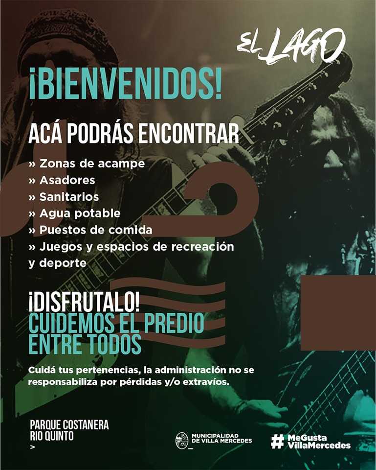 El Parque Costanera Rio Quinto más conocido como El Lago, es el punto de encuentro de cientos de personas que llegarán de diferentes provincias para ver a la banda de Mataderos que hará vibrar al Parque La Pedrera.