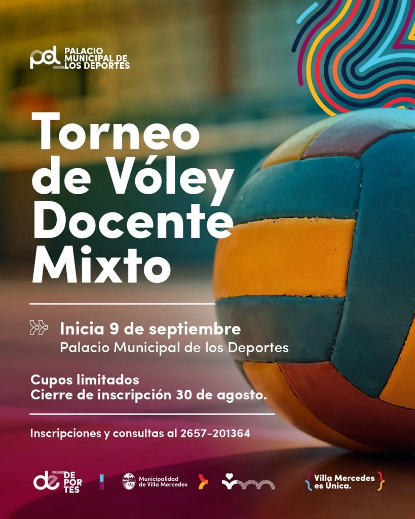 El próximo 9 de septiembre dará inicio un nuevo torneo de vóley destinado a docentes, que tendrá lugar en las instalaciones de El Palacio. La competencia contará con cupos limitados y las inscripciones permanecerán abiertas hasta el 30 de agosto. Quienes deseen participar pueden comunicarse al 2657-201364.
