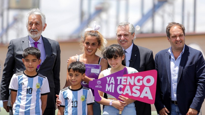 El presidente Alberto Fernández encabeza este mediodía la entrega de 187 viviendas en la ciudad de San Luis, acompañado por el gobernador Alberto Rodríguez Saá y el ministro de Desarrollo Territorial y Hábitat, Santiago Maggiotti, en el marco del programa federal Casa Propia.