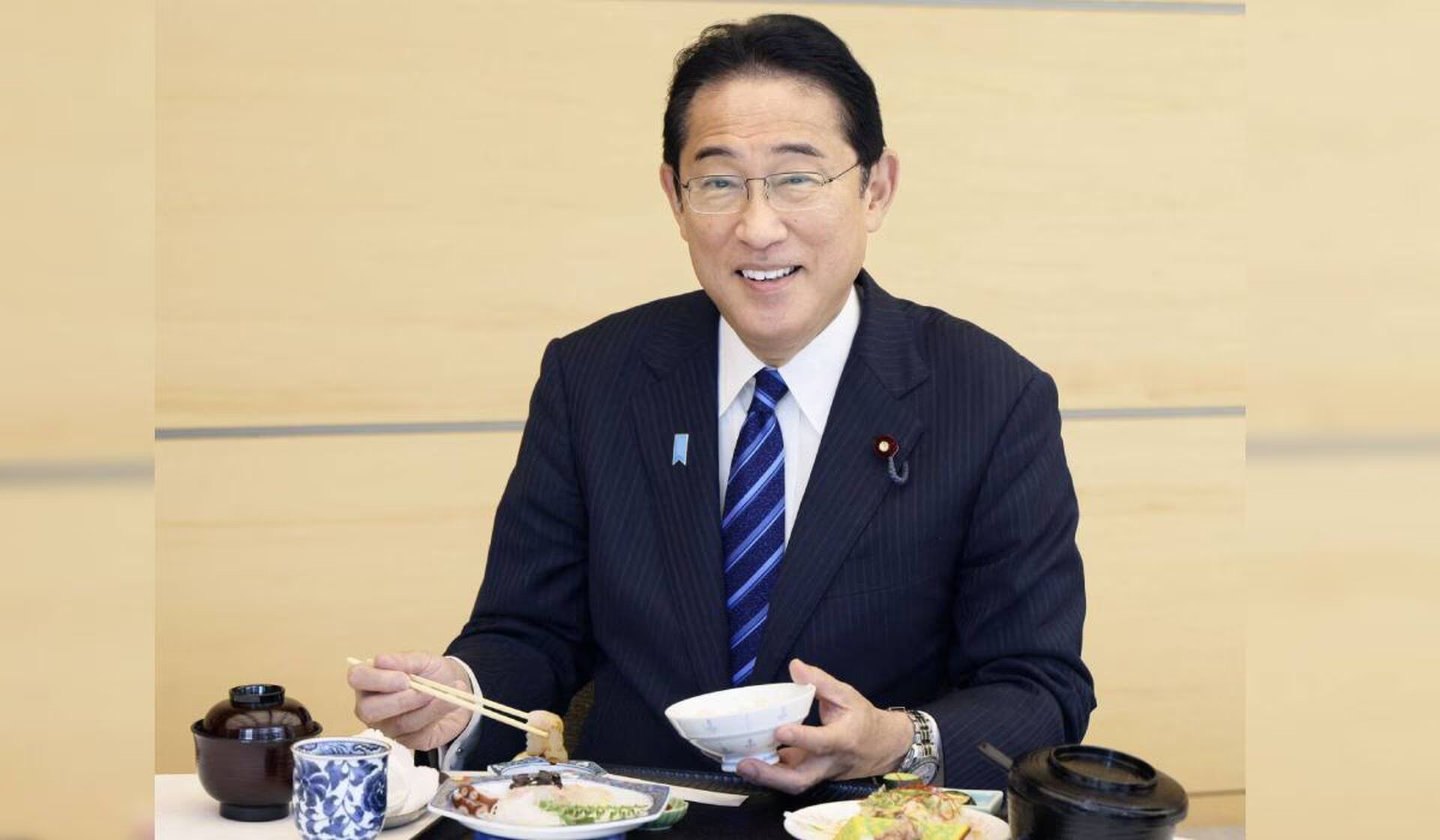 Kishida comió pescado ante las cámaras