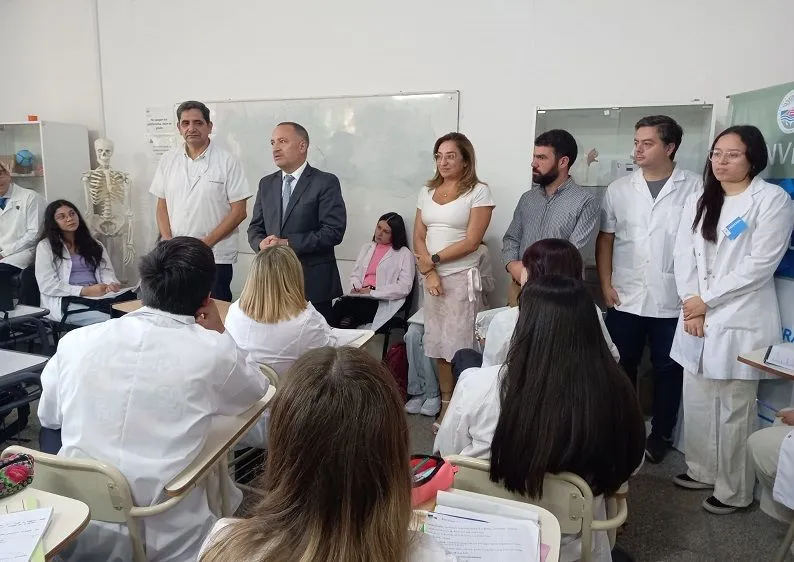 El rector concurrió acompañado por la Directora de la Escuela de Ciencias de la Salud, Vanesa Cassano, y el Secretario de Asuntos Estudiantiles y Bienestar Universitario, Damián Riera Bauer.