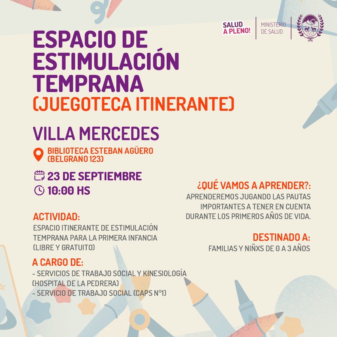 Organizada por los Servicios de Trabajo Social y Kiniesología del Hospital de La Pedrera, este Sábado, desde a las 10 de la mañana, se trabajará un Espacio de Estimulación Temprana, con una Jugoteca Intinerante.