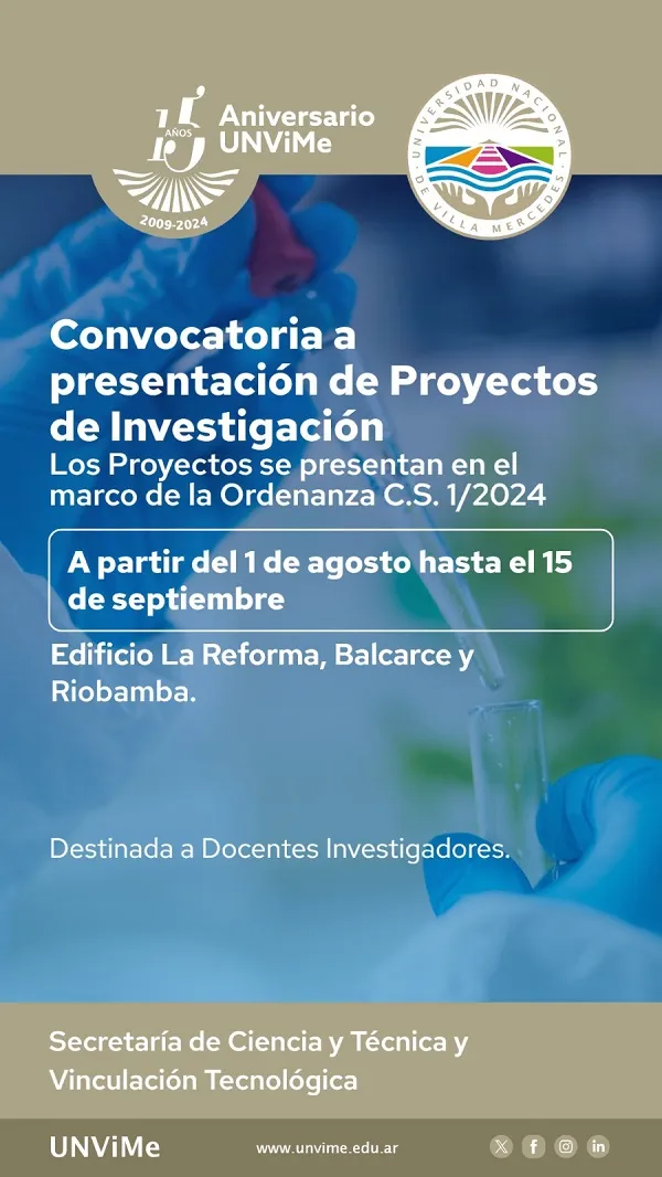Previamente la Comisión Asesora de Ciencia y Técnica (CAICYT), dependiente de la Secretaría de Ciencia y Técnica y Vinculación Tecnológica, había avalado la convocatoria y trabajó en la confección de la nueva Ordenanza de Proyectos de Ciencia y Técnica (Ord. C.S. N° 1/2024).