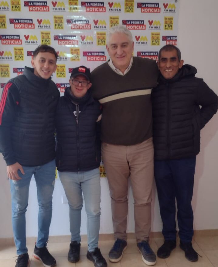 Alumnos del Centro de Día Newen, Martin y Miguel, junto al orientador Kevin visitaron los estudios de FM 99,5 La Radio de Villa Mercedes, y dialogaron con Mario Diaz, en “Una Mañana Perfecta”