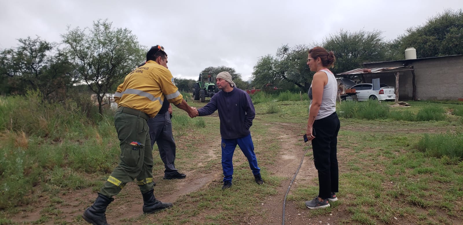 También realizaron tareas de prevención el personal de la dirección de Bomberos de Policía con asiento en La Toma y los bomberos voluntarios de esa ciudad realizaron el rescate de vehículos que habían quedado atrapados por la crecida de canales y desagües naturales sobre la ruta, a siete kilómetros de Juan Llerena.