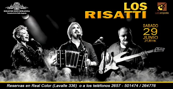 Con “Los Risatti” Nos presentaremos este Sábado 29 de Junio, Va a ser una noche muy emotiva, Ya que presentaremos en el escenario a las nuevas generaciones de Risatti, que al igual que nosotros traemos la música en la sangre, además brindaremos por el cumpleaños de “Manuel Risatti” nuestro padre que está cumpliendo sus 83 añitos.-