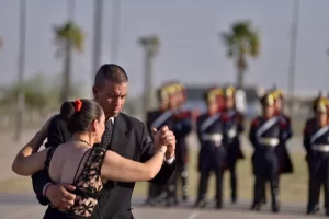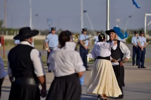 La Banda Militar “Manuel Félix Origone” inició la recepción interpretando el Himno Nacional y luego presentó un variado repertorio que incluyó “Calle Angosta” y culminó con la “Marcha de Malvinas”. También participaron el taller de tango “Bandoneón” y el taller de folclore de adultos mayores “Estampas Mercedinas”.