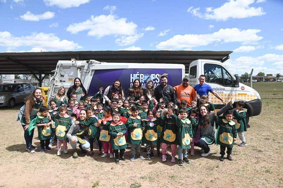 Uno de los empleados explico lo que realizaban “Nos acercamos con la máquina compactadora para enseñarles el funcionamiento de la misma a los alumnos, docentes, directivos y padres”.