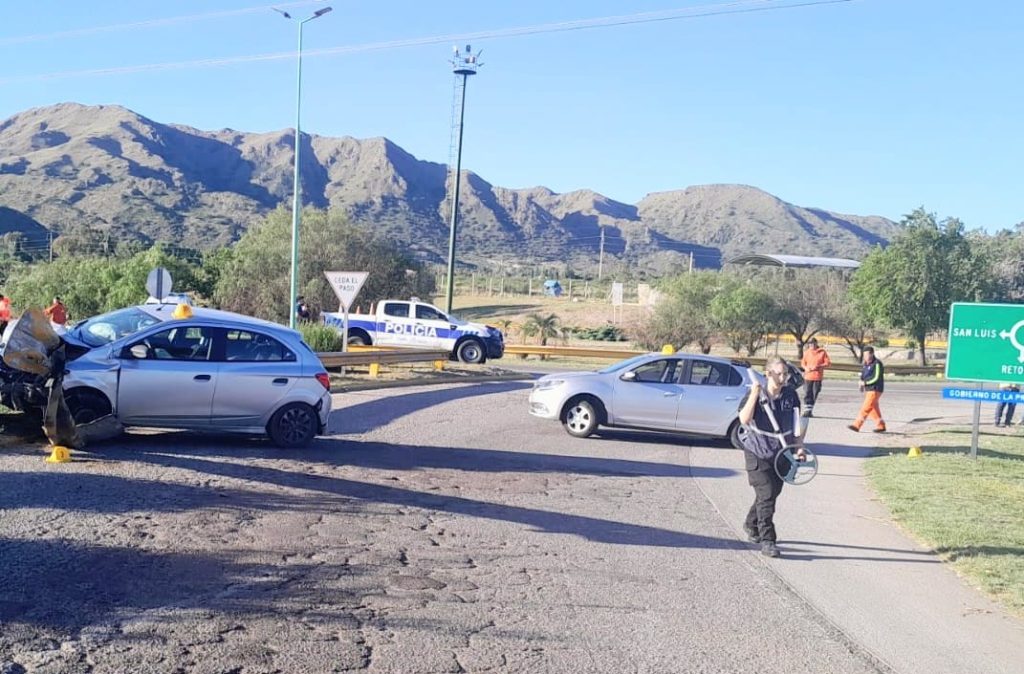 Juana Koslay: una mujer resultó lesionada tras un choque entre dos autos en la rotonda de la avenida José Santos Ortiz