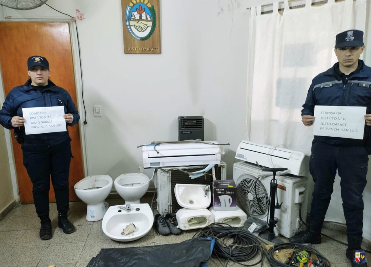 Policías de la Comisaría Distrito 18° de Justo Daract llevaron a cabo distintos allanamientos en esa ciudad, a partir de los cuales recuperaron distintos elementos que habían sido robados del Club Pringles y demoraron a dos hombres.