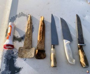 Los mismos manifestaron no poseer los permisos correspondientes, por lo cual se les secuestraron tres cuchillos y una linterna.