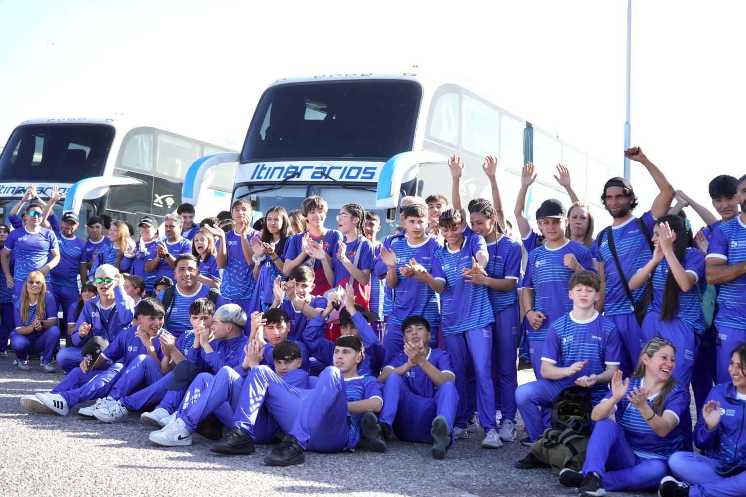Antes de emprender el viaje en seis colectivos, los atletas escucharon un mensaje grabado del gobernador Claudio Poggi, quien no pudo estar presente por compromisos en la Feria Internacional de Turismo en Buenos Aires. “Sé del esfuerzo que hicieron durante todo el año, cada entrenamiento y cada sacrificio. Eso ya los convierte en verdaderos campeones. No les pedimos resultados, les pedimos algo mucho más grande: que disfruten, que aprendan, que hagan nuevos amigos, porque ya estamos orgullosos de ustedes”, expresó.