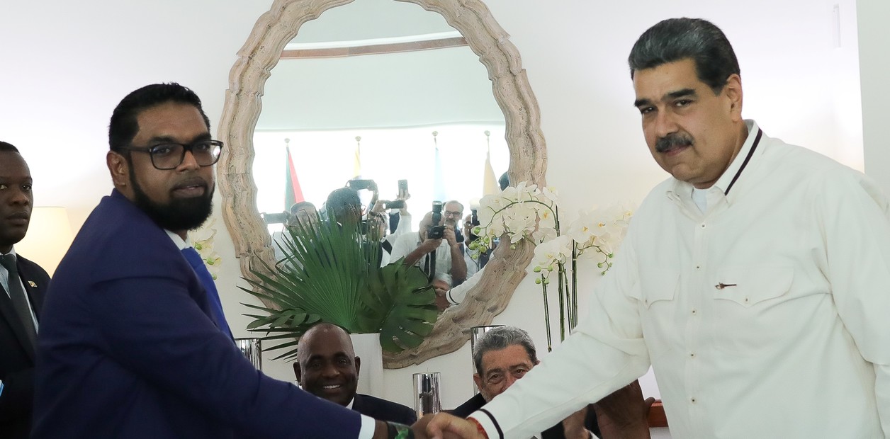 El mandatario de Venezuela Nicolás Maduro y su par de Guyana, Irfaan Alí, celebraron este jueves en las islas caribeñas de San Vicente y las Granadinas el primer encuentro que concluyó sin acuerdos pero con la intención de continuar el diálogo para buscar una solución a la disputa del Esequibo.