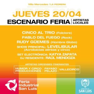 La música y el arte también serán protagonistas. No solo habrá shows nacionales sino que podrás visitar el escenario alternativo donde sonarán artistas locales y provinciales. Además, habrá números de acrobacia, circo, humor y más.