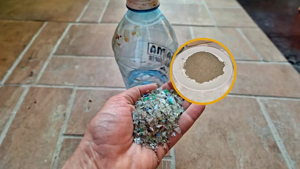Al contar cómo es el proceso de elaboración, explica que es similar a otros que utilizan plástico como principal fuente. “Tenemos centros de acopio de botellas, sobre todo las de gaseosas; los pasamos a buscar y ya en el centro de elaboración, cada una de las botella pasa por un proceso que las convierte en escamas, luego por otro de granulación en el cual se transforman en bolitas pequeñas y de ahí se las hace polvo. Ese polvo se mezcla con los aditivos y así se crea el ecocemento”, detalla.