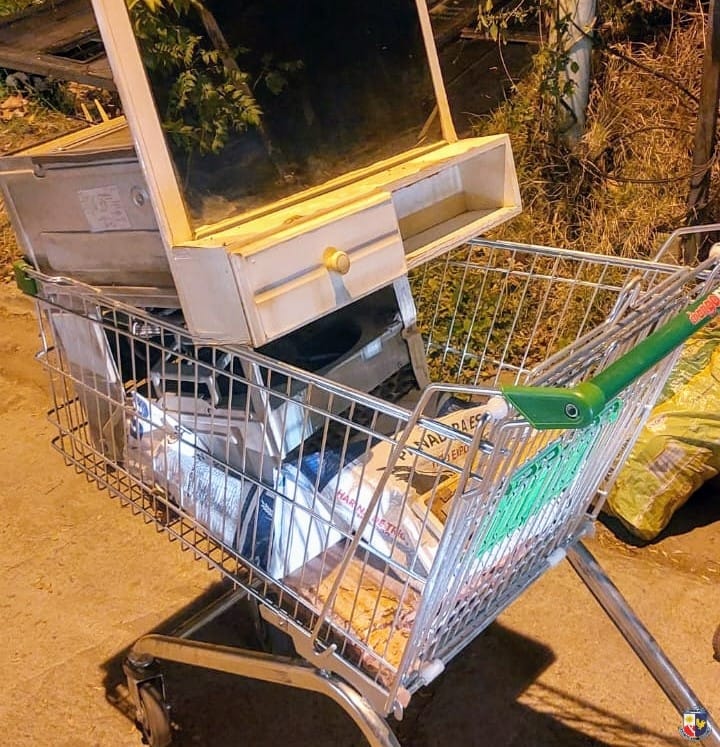 En el lugar los uniformados constataron que en un carro de supermercado el hombre tenía diversos elementos como: un aire acondicionado BGH, un botiquÍn de madera con dos cajoneras y espejo, varios cables, objetos de sanitario (canilla y llave de paso de bronce), una caja térmica (con llave térmica en su interior), un portalámpara, un picaporte de bronce y una bobina.