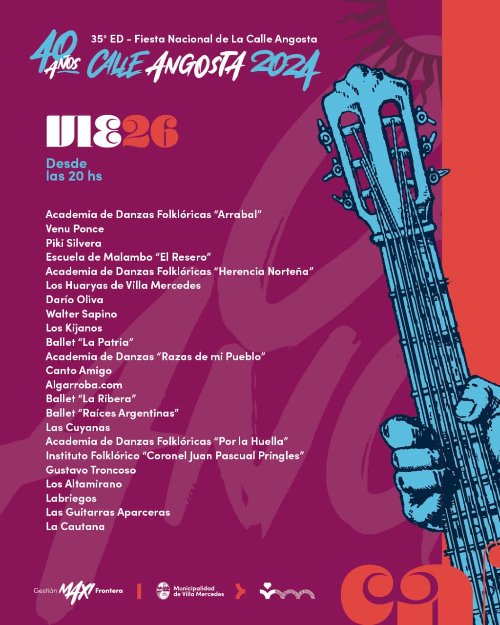 Este viernes dará inicio la emocionante 35° edición de la Fiesta Nacional de la Calle Angosta, que en esta ocasión adoptará un carácter solidario, con los artistas ofreciendo sus actuaciones de manera desinteresada. El evento se extenderá a lo largo de tres noches llenas de música y entretenimiento.
