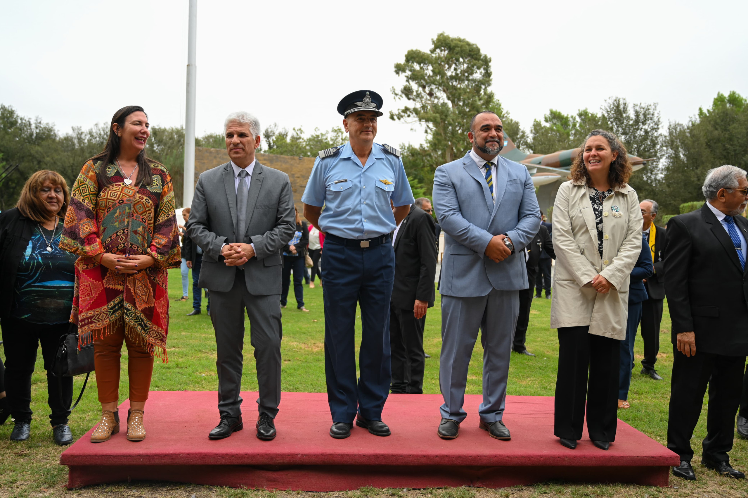 La tradicional base aérea y sus integrantes fueron homenajeados con un acto que incluyó un desfile, el izamiento de la Bandera Nacional obsequiada por la Academia Belgraniana y el homenaje a los militares que partieron desde allí y perdieron la vida en Malvinas.