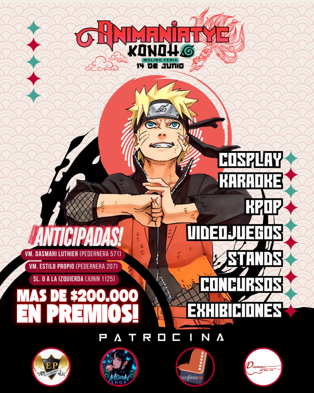 El próximo 14 de junio se llevará a cabo la séptima edición de Animaniatyc Konoha en el Complejo Molino Fénix de la ciudad de Villa Mercedes, San Luis. Se trata de una convención de anime, cómics y cultura pop, pensada para toda la familia, que contará con actividades, concursos, videojuegos, exhibiciones y stands temáticos provenientes de distintos puntos del país.