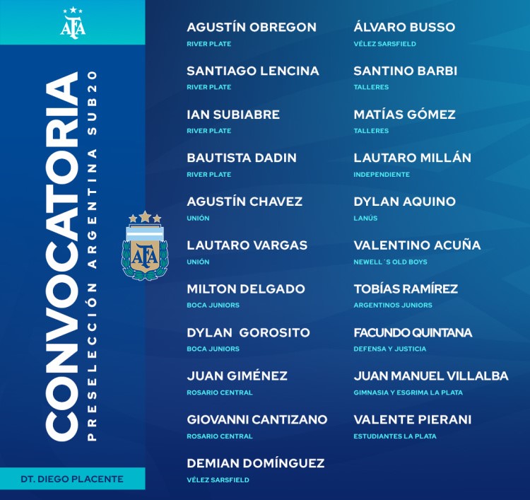 En esta convocatoria, también fueron citados otros jóvenes talentos como Ian Subiabre (River), Milton Delgado y Dylan Gorosito (Boca), Santiago Lencina y Agustín Obregón (River), Giovanni Cantizano (Rosario Central), Dylan Aquino (Lanús), Valentino Acuña (Newell’s) y Tobías Ramírez (Argentinos Juniors). Además, Bautista Dadín fue llamado por primera vez a la categoría juvenil.