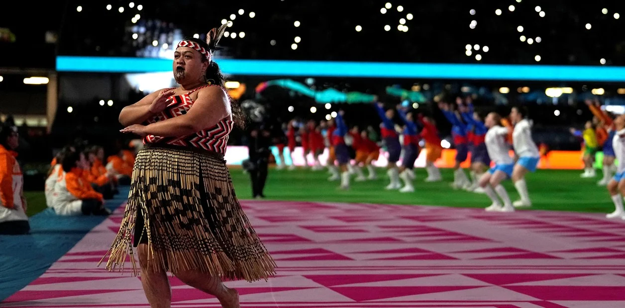 El espectáculo, que se extendió por menos de diez minutos, incluyó la exhibición de danzas tradicionales locales desde el campo de juego del estadio Eden Park, en la ciudad neozelandesa de Auckland, y la presentación de los 32 seleccionados que participarán en el torneo, una cantidad inédita para la rama femenina.