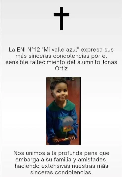 En las redes sociales, la escuela compartió un mensaje de despedida para el niño, quien había asistido a sus primeras jornadas escolares en la sala de 4 durante los cuatro días de la semana.