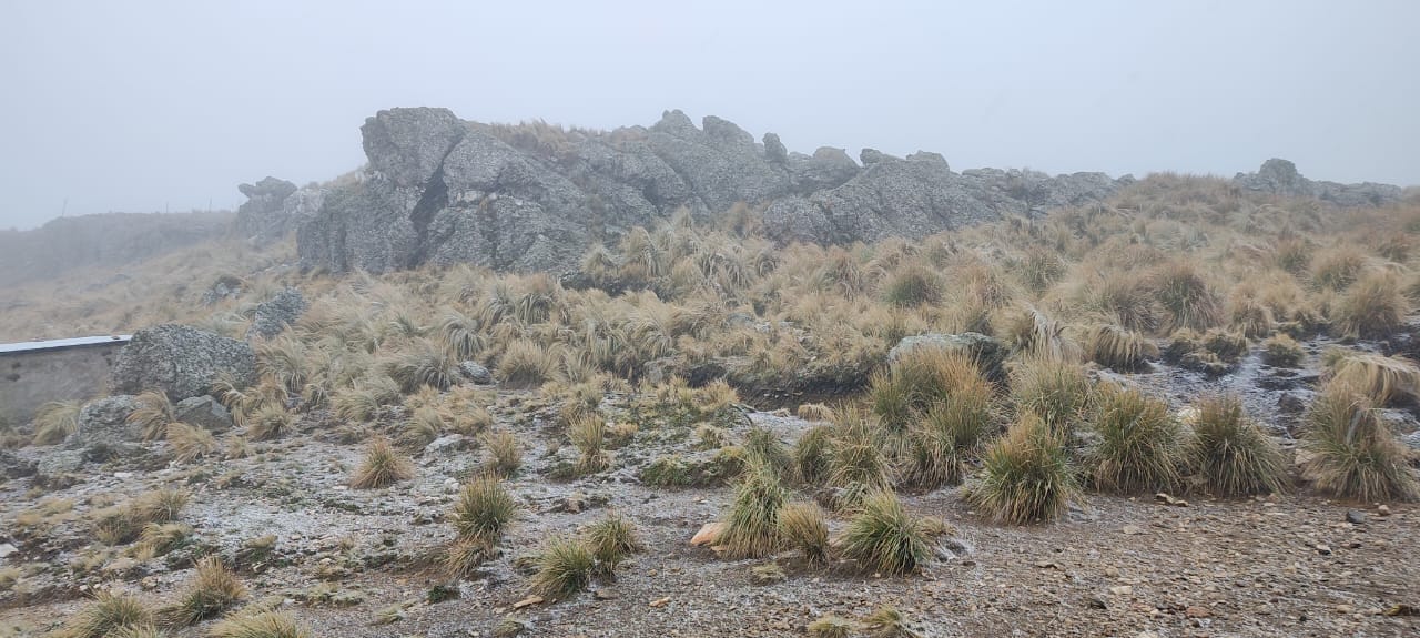 Mientras, en la parte baja se desarrollan lluvias, en lo alto de la Sierra de Los Comechingones comenzaron a caer pequeños copos de nieve.