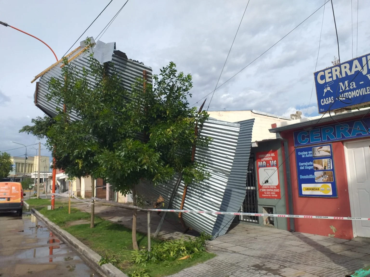 Las ráfagas de viento alcanzaron los 42Km en la hora, características de las ultimas tormentas que provocaron la caída de árboles, generaron calles inundadas y ocasionaron voladuras de chapas en distintos sectores de la ciudad. En las proximidades de la Terminal de Ómnibus, un techo se desprendió y cayó frente a un comercio ubicado sobre Hilario Cuadros, reflejando la intensidad del fenómeno climático.
