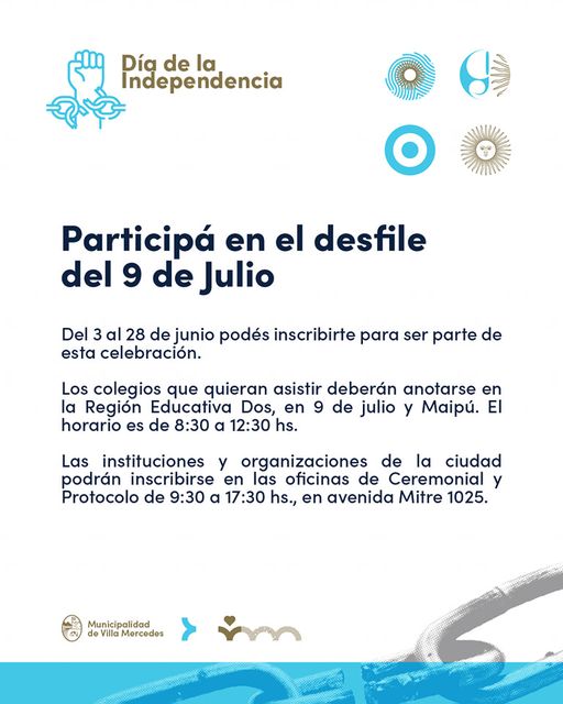 El resto de las instituciones, clubes y organizaciones deberán acercarse a las oficinas de Ceremonial y Protocolo de la Muni (Av. Mitre 1025) de 9:30 a 17:30 hs.